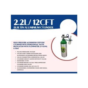 High pressure Aluminium Oxygen cylinder with horizondal valve regulator with Flow meter ( 0-5lpm ) with bag