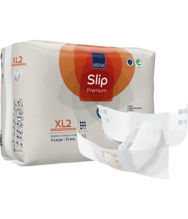 “Abena Slip Premium is range of all-in one incontinence briefs for moderate to heavy incontinence. The anatomically shaped briefs offer an high fit combined with breathable non-woven side panels and curved leg elastics for extra comfort. All products are fitted with leakage barriers and built in cross barrier at rear for extra protection. The product features a Top-Dry system for optimum comfort and skin integrity and odour system that minimises unpleasant smells. The all-in-one incontinence briefs have high quality tapes that ensure optimum fit and easy repositioning, and are designed with an added wetness indicator with graduation scale, that provides an indication to when the product needs changing.